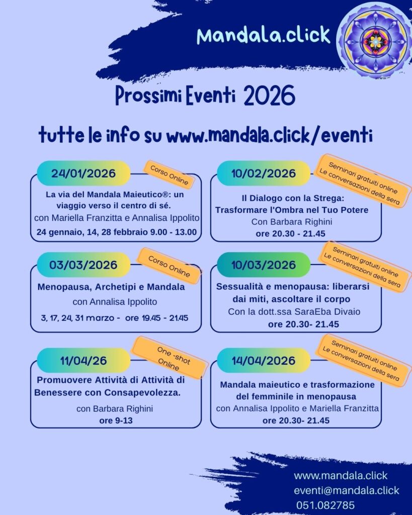 Eventi ed attività online Per informazioni e iscrizioni clicca su eventi Correlati 20/01/2026 in Eventi Annalisa Ippolito corsi mandala Annalisa Ippolito formazione mandala Annalisa Ippolito mandala corsi online mandala Eventi Mandala eventi mandala.click Formazione e mandala mandala Mandala Maieutico workshop mandala ← Articolo precedente Lascia un commento Annulla rispostaDevi essere connesso per inviare un commento.